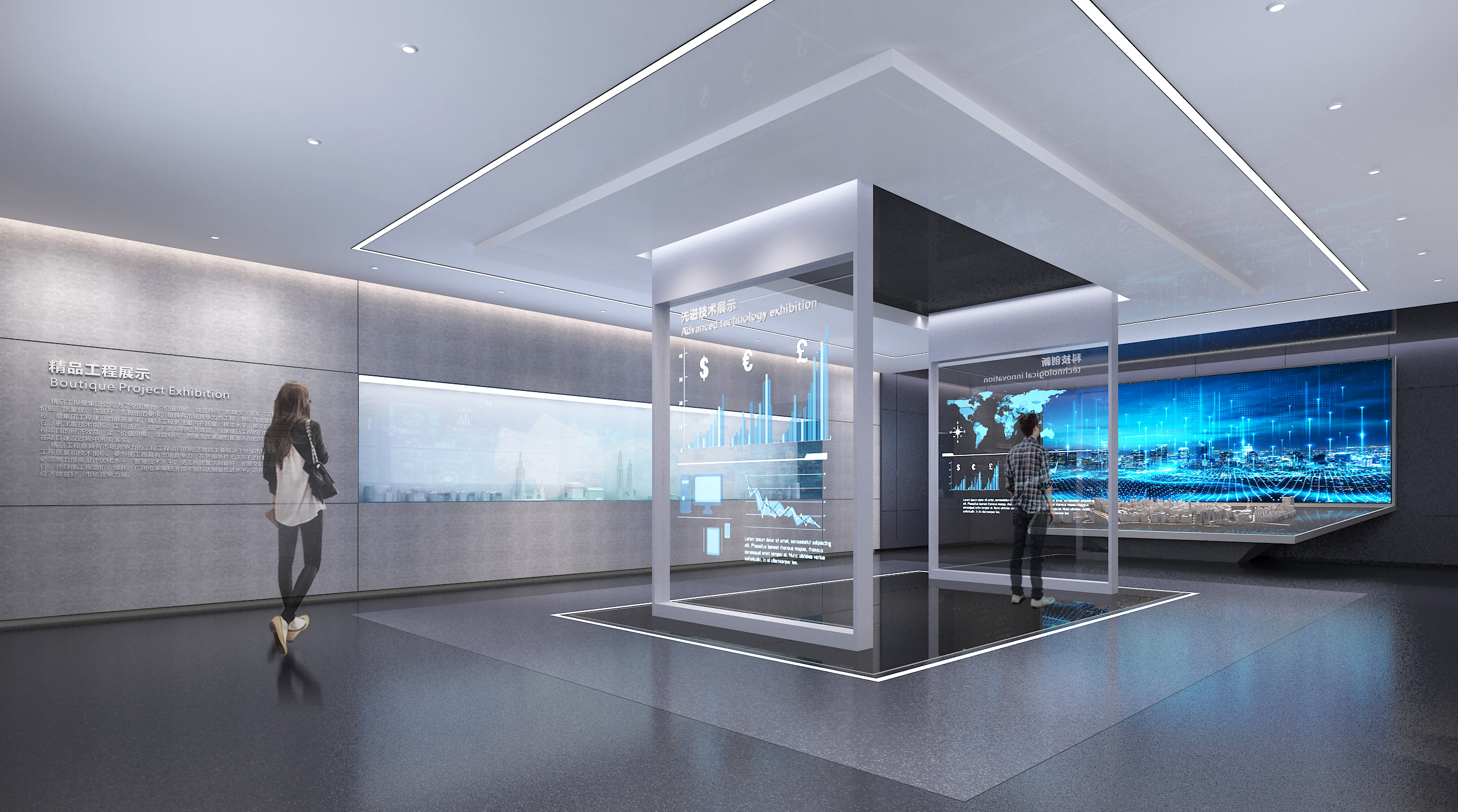 计会通过和谐与对比、节奏与韵律、渐变与突变、对称与均衡等各种手法来表现展示的形式感,实现展厅设计的视觉美感和艺术表达。