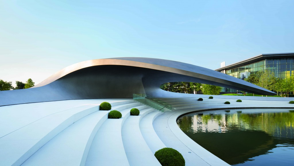(图O-3)沃尔夫斯堡汽车城的奥迪品牌展厅.展示出了奥迪现有的技术和创新。展厅最大的亮点是一个互动的“奥迪圆球”。“奥迪圆球”是参观者参观展厅的随身伴侣,也是整个展厅的钥匙,参观者可以根据自己的需要使用钥匙,选择自己喜欢的欣赏内容。