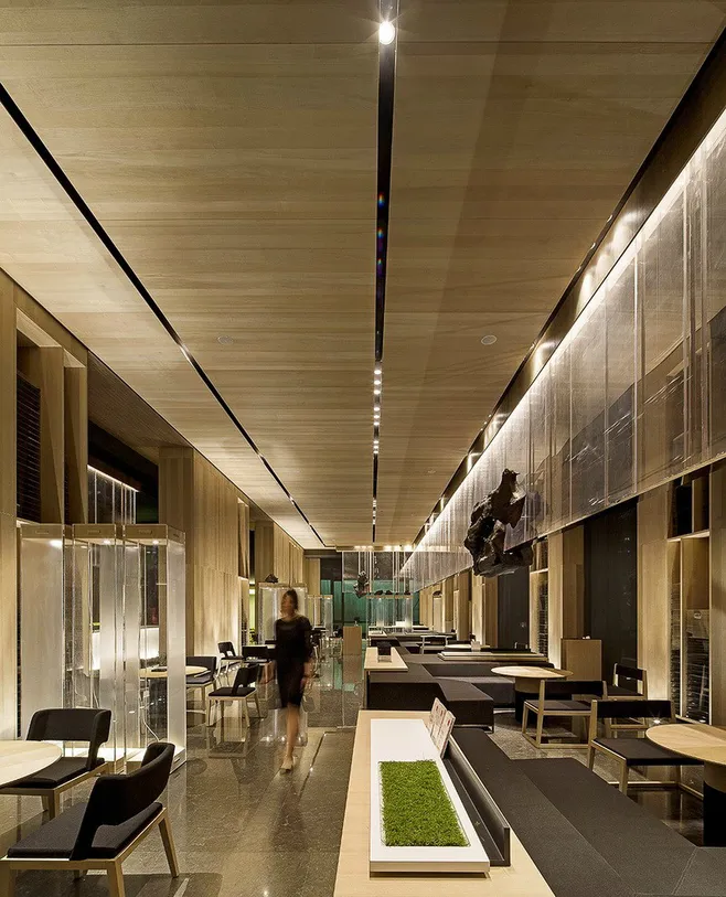 (图O-4)浮石展厅大面积同质化的材料应用,降低了材料与工艺风险,并建立快速复制应用的施工工艺标准,现场组装的模块化材料很大程度上提升了工程进度与效率。作为完整的空间一陈设一家具一标识一体化设计应用项目,浮石展厅设计获得2014APIDA亚太室内设计金奖。