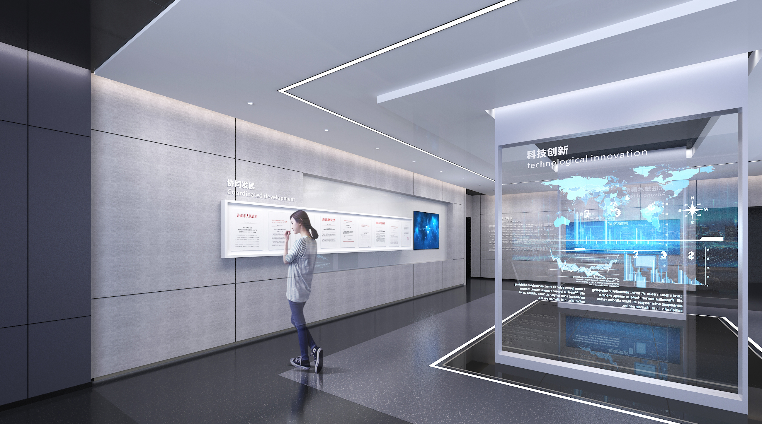 需求与造就美感的必要条件,构思光环境,确定照明方式,选择照明设施是公司展厅设计公司展厅设计光环境设计的主要内容。